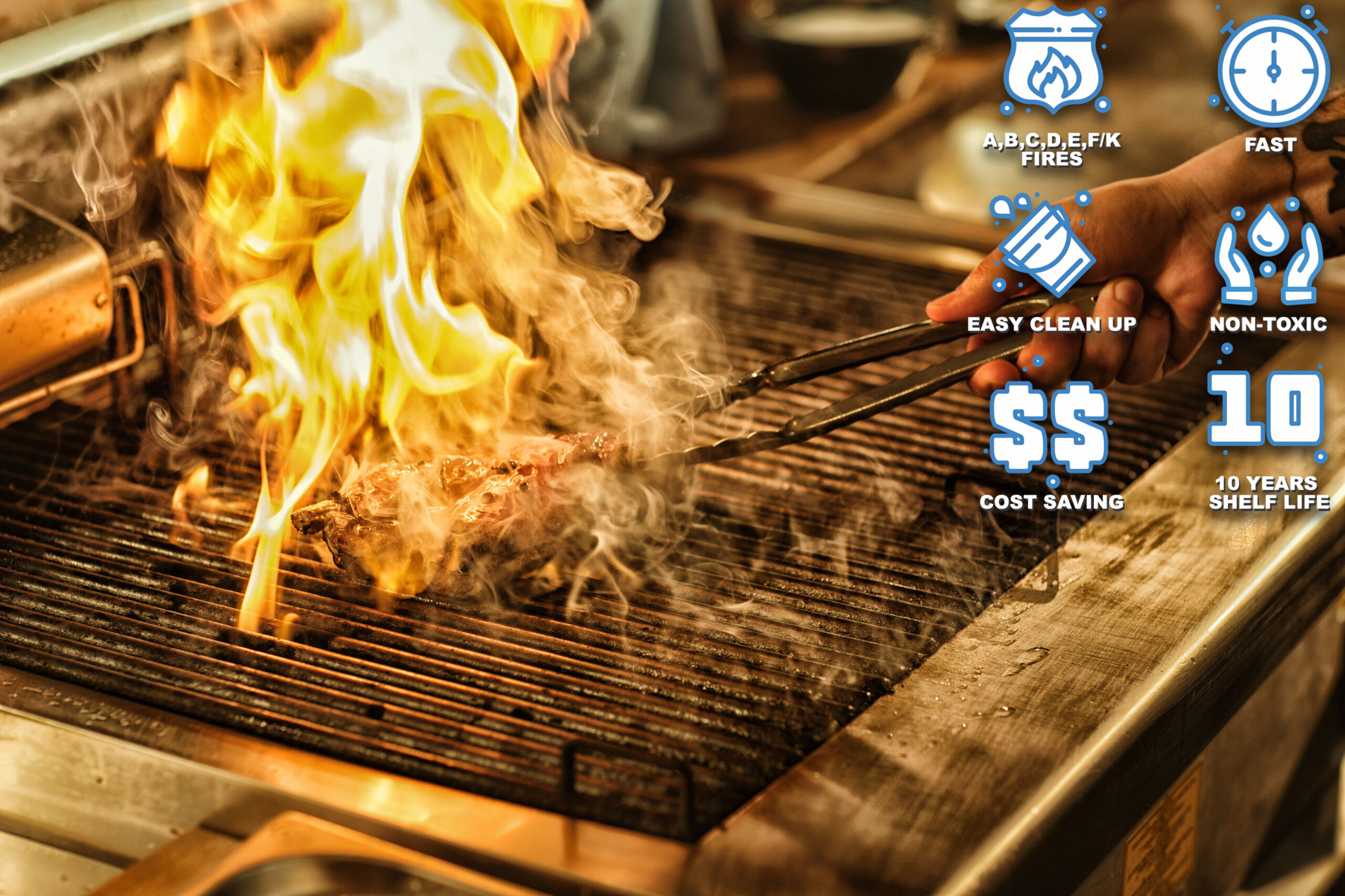 Meet the newest most effective Fire Extinguisher Spray-works on all fires and works faster and more permanently than any other solution around-plus its 100% organic and non-toxic and eco-friendly. With a 10 year shelf life- and in an easy to use format, this is ideal for restaurants, kitchens and bars.